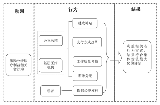 激励相容机制贯穿于分级诊疗运行全过程,起到黏合剂和催化剂作用。科学的行为激励使得分散的各类医疗资源可以进行有效整合利用。医务人员工作的积极性和主动性影响着医疗机构的医疗服务水平,决定着医疗机构的中长期发展目标,进而影响到医疗机构的发展定位。在医疗行业,人力资源激励就是激发医务人员的动机,形成内在动力向目标努力前进的心理过程,激励水平越高,行为就越积极。