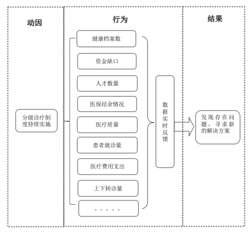 反馈机制衔接医疗资源转化阶段和下个周期的医疗资源投入阶段,通过实现的政策效果助推下一个发展周期实现进一步发展升级,这些成为卫生健康行政管理部门对未来发展趋势的预测和分级诊疗制度再创新、再发展的基础,反映了人民群众医疗需求状况与服务效果情况,促使以卫生健康行政部门为主的政府部门动态调整医疗资源投入与整合工作。