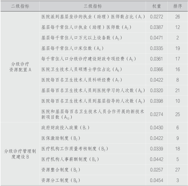表8-3…分级诊疗制度实施绩效评价指标权重值及其排名