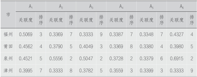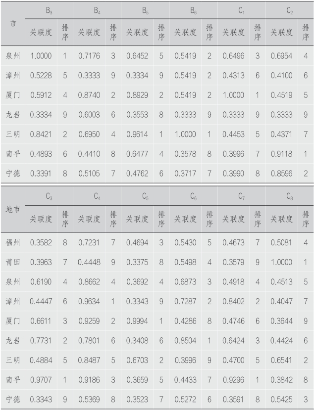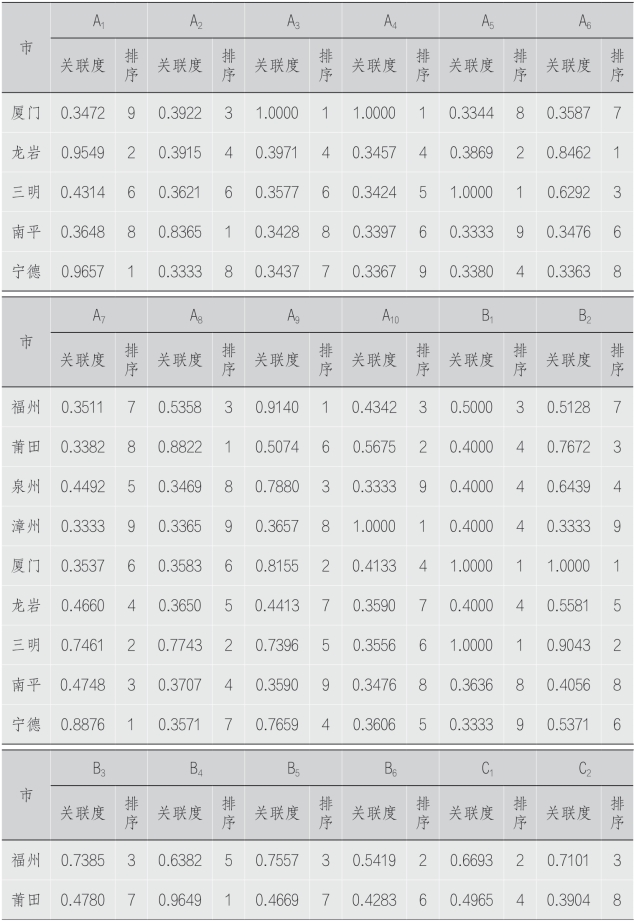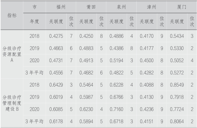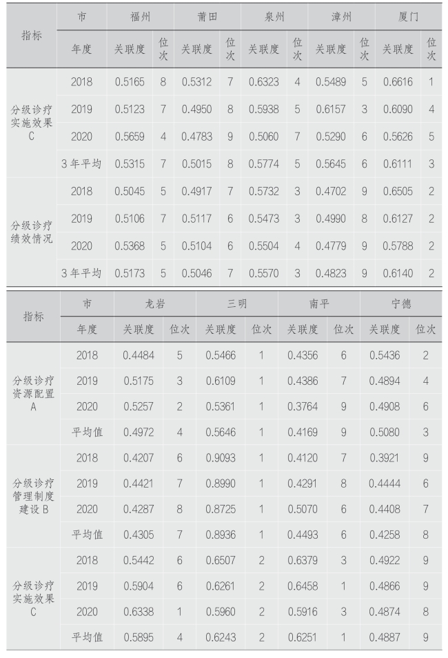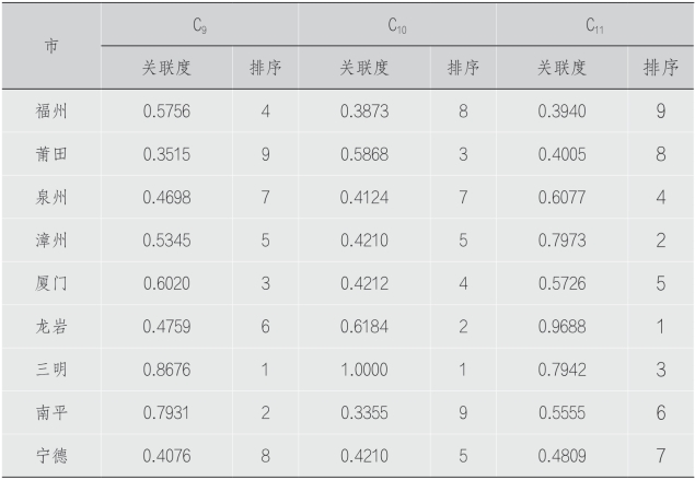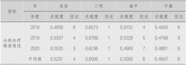 表9-2 福建省各市分级诊疗三级指标灰色关联度值