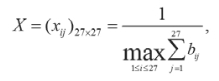 bii=0,bij=wi / wj为第i个因素相对于第j个因素的值,若wj=0则bij=0。