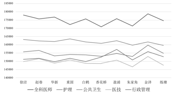 图10-12 上海青浦区社区卫生服务中心医务人员平均年收入情况