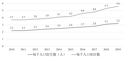 图10-14 2010—2019年上海市医生数和床位数基本情况