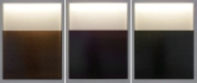 在漆画的创作中,亚克力材料可以作为漆画的基材进行创作,作为画基需选用较厚的亚克力板材,便于装裱与热加工的制作。在热加工中亚克力板材易收缩,由于受热不均使得材料内部应力较大,导致整体产生形变,但后期可以整体加热利用重物压平,使板材恢复平整。亚克力材料在热加工时受热变软,可以将大小不同的亚克力材料加热融合在一起,也可以嵌入其他耐高温材料进行结合,或是使用模具在软化的亚克力材料上制作肌理,丰富画面底层的肌理效果。在冷加工中,可以对亚克力材料进行打磨、凿刻制作肌理。髹漆的过程中,将麻布等纤维材料与亚克力结合可以制作出的肌理;髹漆控制漆层的薄厚程度,利用板材的透明性能呈现出不同的色彩视觉效果。在展陈方式上,以亚克力板作为基材的漆画具有更多的展陈方式与效果。亚克力材料的透明性质能让作品从正反面同时进行展示,从不同的角度欣赏大漆的材质美,正反面进行结合制作丰富表现效果(图9、图10)。亚克力的透明质感在展陈中可以与LED光源进行结合(图11),在背部放置光源,产生全新的视觉效果。亚克力板材作为漆画基材,拓展了漆画的基材范围,创新了工艺方式与材料的运用,在视觉上具有当代感,为漆画提供全新的画面语言。
