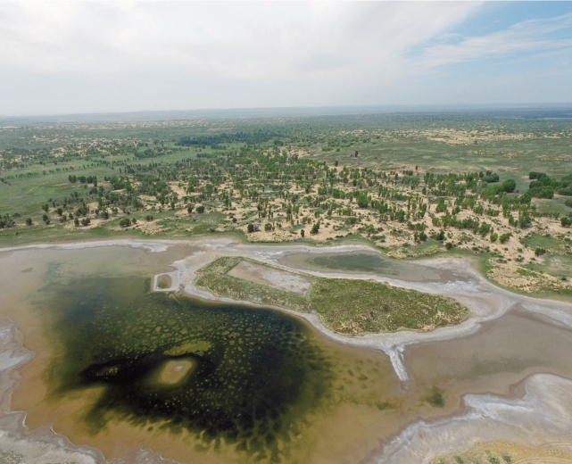 根据国家标准《自然保护区类型及级别划分原则》(GB/T 14529—93),哈巴湖保护区属“自然生态系统类别”中的“荒漠生态系统类型”国家级自然保护区。保护区以“荒漠草原—湿地生态系统、珍稀濒危动植物和毛乌素沙地丰富的地下水”为主要保护对象,是集资源保护、科研监测、沙漠旅游、科普教育于一体的国家级自然保护区。根据《宁夏哈巴湖国家级自然保护区总体规划(2016—2025)》,保护区具体保护对象为:①荒漠草原—湿地典型的自然生态系统(图1-1);②黄土高原向鄂尔多斯台地、干草原向荒漠草原、半干旱区向干旱区、农区向牧区过渡的四大交错带及其自然生态综合体;③灌丛、灌草丛、草原、荒漠、草甸、湿地等典型的自然景观;④生物多样性以及珍稀动植物资源;⑤毛乌素沙地重要的水源涵养地和丰富的地下水。