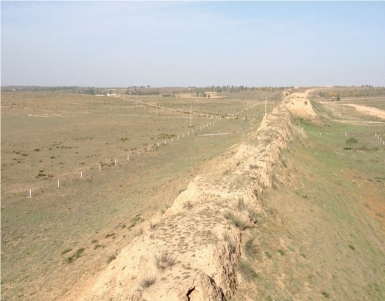 保护区所在的盐池县,被称作“长城博物馆”,境内分布有长城四条,其中一条为隋长城、三条为明长城。距保护区5km 的明长城,俗称“头道边”,筑于明嘉靖年间,因内筑墙外挑壕沟,又名深沟高垒,其是宁夏境内现存古长城遗迹中保存最为完好的一段。距离保护区8 km,有一段露出地表的深色墙体与深沟高垒,每隔1km 还有筑于墙体外侧的敌台,此即为弥足珍贵的隋长城遗迹。