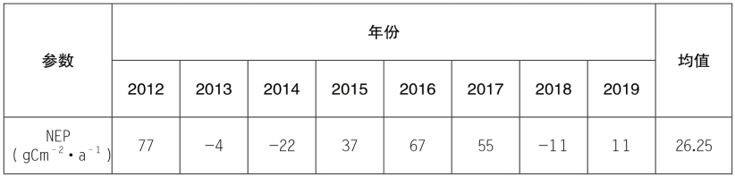 NEP乔木林为以碳量表征的乔木林年净生产力(t·hm-2·a-1);