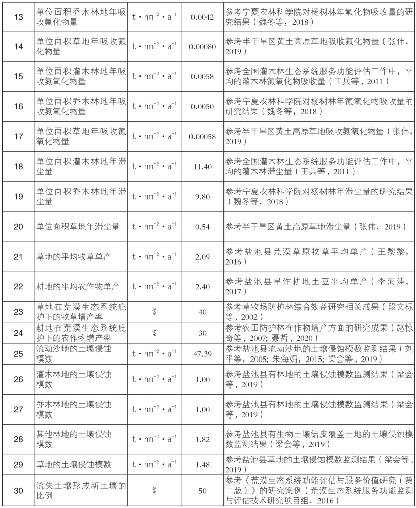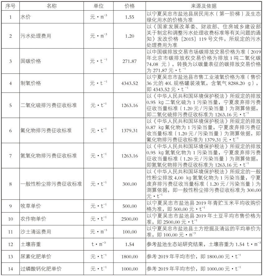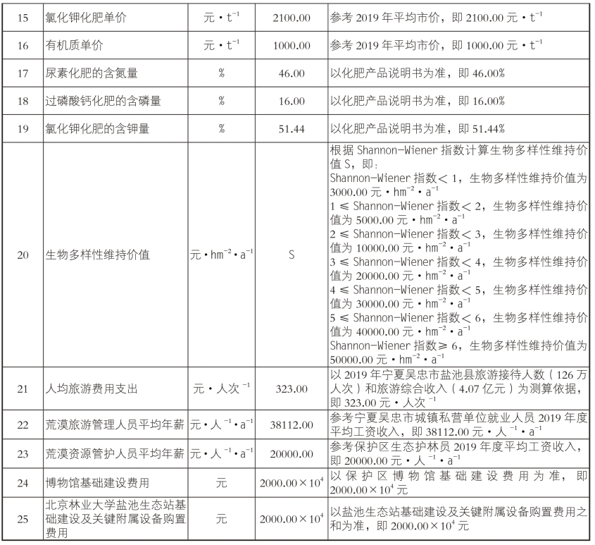 附表2 宁夏哈巴湖国家级自然保护区荒漠生态系统服务功能价值量评估社会公共数据表(2019 年推荐使用价格)