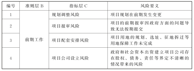 在项目前期工作中,即在项目公司正式成立之前,主要由政府负责项目前期的规划、审批、协调等工作。工程前期工作风险主要包括宏观层面的规划调整风险,关于项目自身的报审风险、配套安排风险,以及双方合资建立项目公司的风险。前期工作准备稳妥与否将会直接决定项目能否顺利进行。