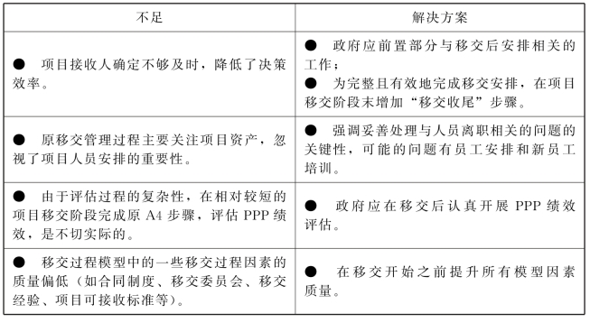 表6-5 中国PPP项目移交现状中的不足及解决方案