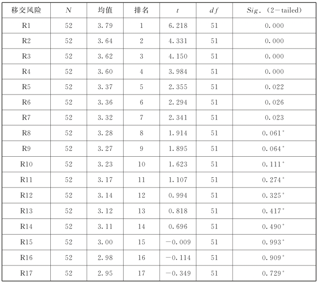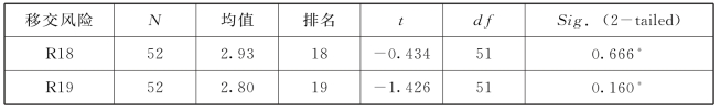 通过问卷调研,本节对从文献和专家观点识别的所有19个移交风险进行了两方面评估:风险发生的可能性和后果的严重性。然后用式(6-1)计算了这些风险的均值,并通过式(6-2)得到了每种风险的风险显著性。对所有风险显著性进行进一步分析,以识别CTRC并进行与CTRC相关的其他统计分析。数据分析结果详述如下。