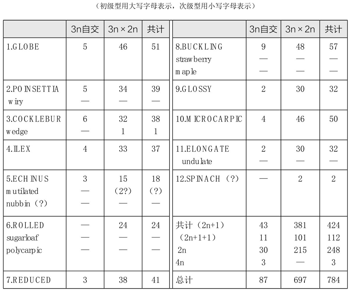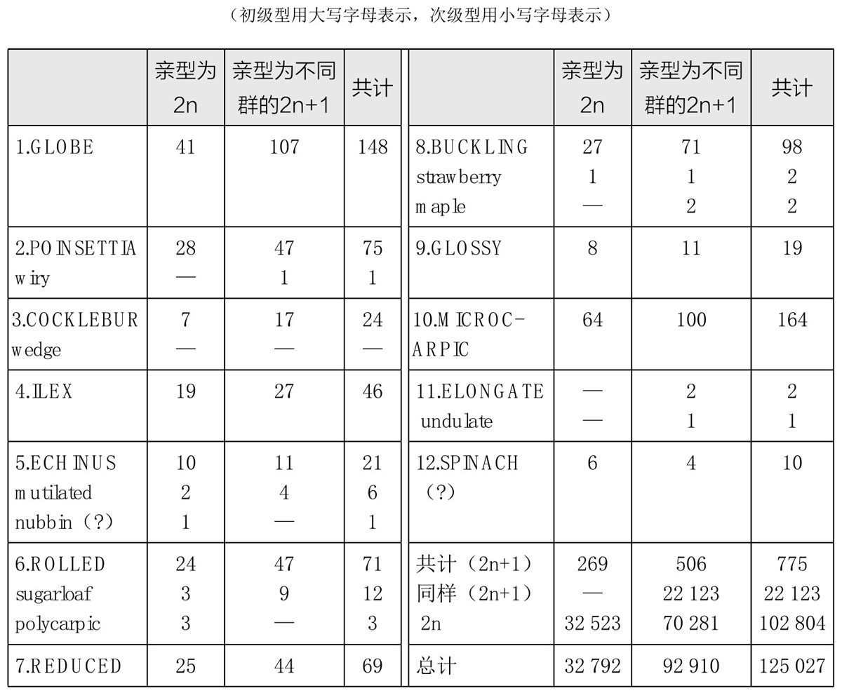 表9 三倍体后代(2n+1)中的初级型和次级型