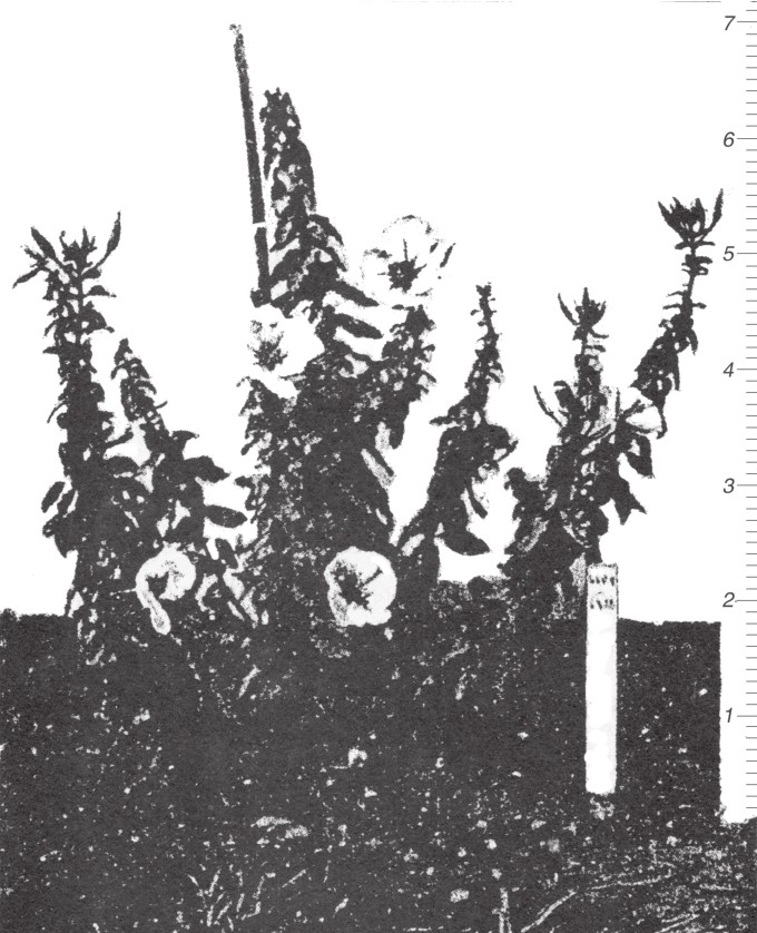 正常情况下,拉马克待霄草有14条染色体。已确定的是,lata突变型待霄草和semilata突变型待霄草都有15条染色体,即增加了一条染色体(如图100)。lata突变型待霄草和正常型拉马克待霄草之间的差异极细微,只有专家才能注意得到。据盖茨所说,有一种lata突变型待霄草的雄性几乎是完全不育的,其种子的产量很低。但有一种semilata突变型待霄草,能产出高质量的花粉。