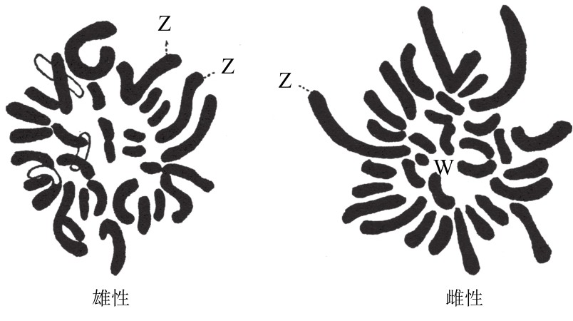 公鸡和母鸡的染色体群。