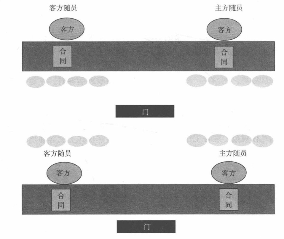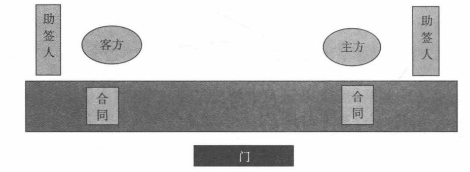 (1)双方签字者面对房间正门就座,客方居右,主方居左。