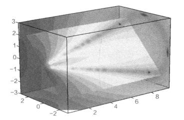 图1-4是用MATLAB中的slice函数绘制的流体数据的四维显示图。用颜色表示第四维信息。图1-5是用MATLAB中的surface函数画的三维贴图效果。在图1-5中,将人脸二维照片的颜色数据作为三维图的颜色矩阵。