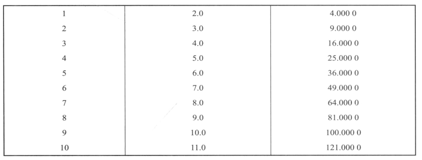 例12:读一个数据文件,处理后再写入。设有一个文本格式数据文件(test.txt )见表3-4,欲将其第二列平方后写成第三列,可用下面的程序: