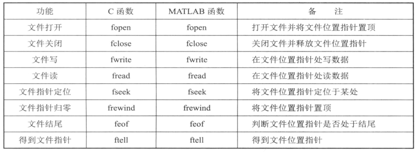 表3-6 MATLAB二进制文件操作函数一览表