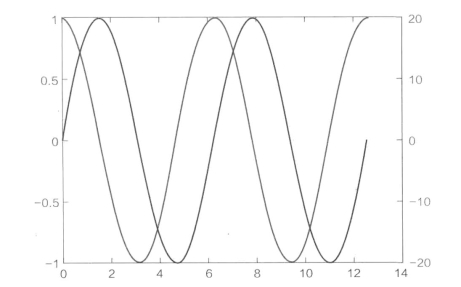 例8:将值域相差很大的两条曲线绘制在同一图上。