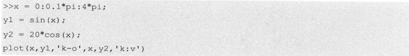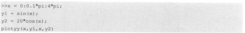 可见,图5-10中有两个y轴,可以有效表示两个值域差别很大的函数的变化趋势。至于具体如何应用plotyy,以及如何将图中的曲线设置成自己想要的颜色、线条及符号,请查阅plotyy的“Help”并参照本书后面的内容(句柄图形的部分)。