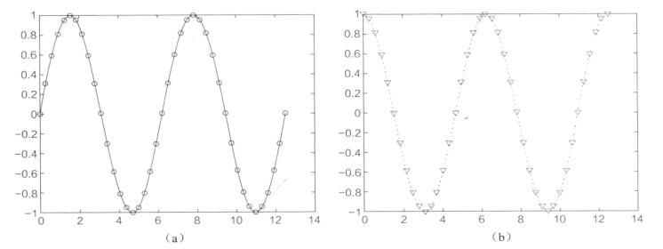 在第二个曲线绘制前,用figure命令产生一个新的figure,则第二条曲线绘制在新产生的figure上,如图5-6所示。在MATLAB的figure窗口上可以看到,两个figure分别标上了“figure 1”和“figure 2 ”。