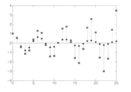 事实上,二维数据除了用plot绘制成曲线外,还有许多其他表示方法,如图5-12所示的柱状图、图5-13所示的饼状图,以及图5-14所示的杆状图所示。对于科学数据处理来说,这些图并不常用,如果要用到,读者可以参考MATLAB的“Help”下的“Graphics”部分。