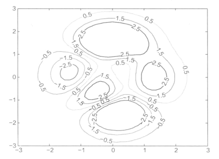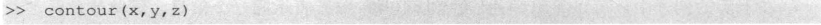 MATLAB绘制等值线的函数是contour。contour的用法读者可参考“Help”。下面只介绍几种常见的用法。