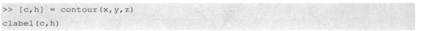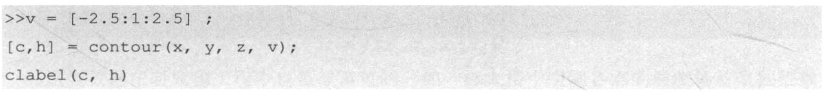 默认情况下,contour生成5级等值线。查看contour函数的定义,可以知道,contour函数可以输出所有等值线的标度及句柄,基于此,可以用clabel函数给等值线加上标度,如图5-22所示。