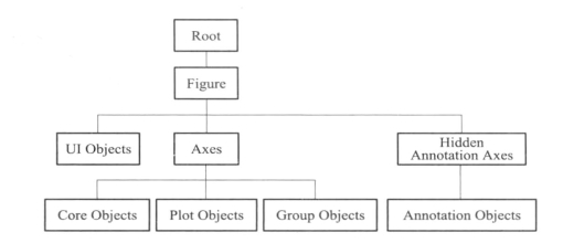 前文说过,MATLAB所有图形都是绘制在Figure上的。Figure是最基本的绘图元素,可以将其想象为要在上面画图的“白纸”。从图5-36中看出,在Figure之上还有一个Root层。Root层是虚的,只是用来保存一些基本的绘图设置,是给MATLAB绘图系统服务的,用户并不能在其上绘图,也不能更改Root层的参数。