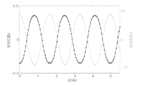 图8-2 滑块位置与摆线角度随时间变化曲线