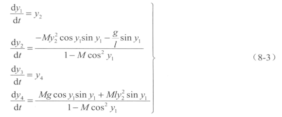 ode45求解常微分方程(组)的最重要一步就是对方程(组)进行降阶处理,使求解方程(组)全部变为一阶微分方程。对于式(8-2),可进行如下降阶处理。