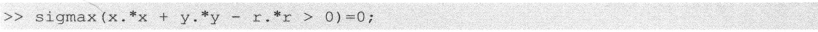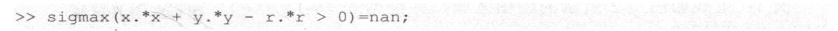 用上一节的方法计算出的圆盘的应力解存在一个问题,即图9-2中的圆盘之外的区域也存在应力值。为了消除这些区域的影响,可先判定圆盘的范围,然后将圆盘之外区域的数据点设为0。用一个语句可完成上述设置: