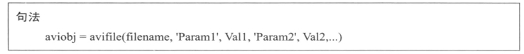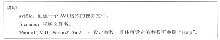 在MATLAB中创建视频文件非常简单,用函数avifile可以方便实现,其格式为: