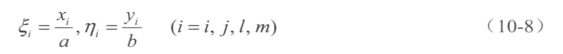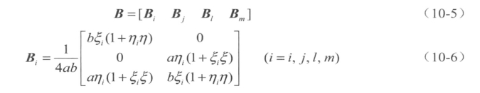 后处理主要包括求应力、应变及画图显示结果等。记任一单元8个自由度的位移向量为δe,则单元内任意一点的应变为