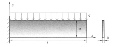 以一个简单的弹性力学问题为例来说明求解步骤。如图10-2所示的平面悬臂梁模型,左端为固定端,上部受均布载荷q作用。求解x方向的正应力。
