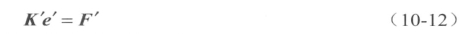组装完成后的K不是一个满秩矩阵,若不做处理,方程(10-1)没有唯一解。因此,在求解之前,需要将已知边界条件引入,以使K满秩。对于本问题,具体做法是:将K矩阵的第1、2、9、10行和列去掉,同时将e、F向量的第1、2、9、10行去掉,组成一个新的线性方程组