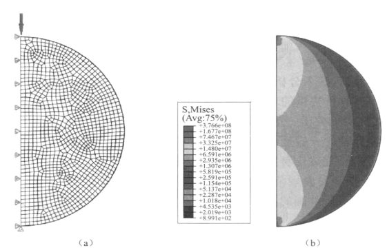 用Abaqus建立有限元模型,如图12-3(a)所示,施加载荷并设定边界条件后进行计算,得到的结果如图12-3 (b)所示。
