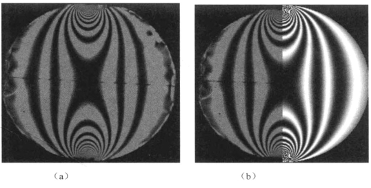 (a)光弹实验等差线条纹;(b)实验等差线与有限元计算结果对比