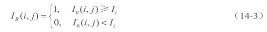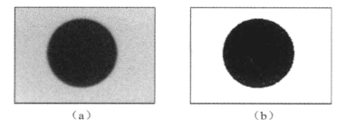 其中,It为一给定的阈值。将图14-23 (a)进行处理,得到的新图像如图14-23 (b)所示。为了便于进行二值化操作,在实验过程中尽量制作与基底反差较大的标记点。