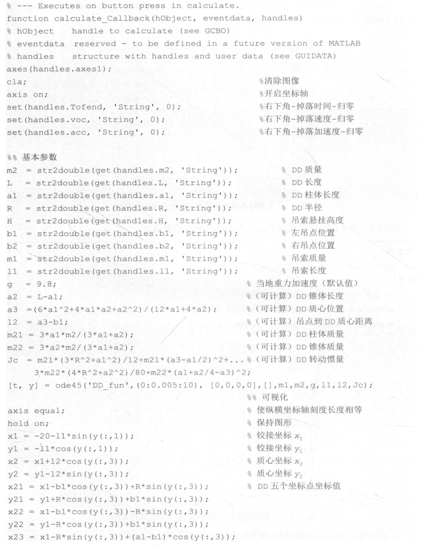 实现弹箭吊装意外跌落的求解程序主体内容如下。