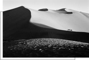 所谓鸣沙,并非自鸣,而是因人沿沙面滑落而产生鸣响,是自然现象中的一种奇观,有人将其誉为“天地间的奇响,自然中美妙的乐章”。当人从山巅顺陡立的沙坡下滑,流沙似金色群龙飞腾,鸣声随之而起,初如丝竹管弦,继若钟磬合鸣,进而金鼓齐响,轰鸣不绝于耳。