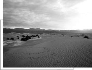 死亡谷是加州东南荒漠里的一处断层地沟,约在300万年以前,这里由于地质变动形成了一个巨大的内陆湖泊。不幸的是,这个内陆湖泊没有任何的入注河流,并且由于周围山脉的阻挡,降雨也少之又少。这汪湖水在百万年的时间里被蒸发一空,只剩下徒然的盐和弥漫在谷中无边无际的焦渴感觉。这是一段失水的无主的风景,来这里的每一个人都会觉得视野里的一切都那样不被润泽,缺失了自然的关爱。从满目黄褐的沙石到白茫茫的盐滩,从萧条的牧豆树到瑟缩的沙地爬虫。