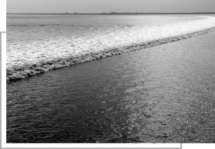 钱塘江的秋潮比其他地方的秋潮更壮观,是与杭州湾的特殊地形分不开的。钱塘江入海的地方(即钱塘江口)叫杭州湾,那里外宽内窄,呈喇叭形,出海处宽达100千米,而往西逐渐收缩为20千米左右,最狭窄处海宁县盐官镇附近,只有3千米宽。潮水涌来时,一路上越往西越受到两岸地形的约束,只好涌积起来,潮头越积越高,好像一道直立的水墙,向西推进。同时,由于潮流的作用,把长江泻人海中的大量泥沙,不断地带到杭州湾来,在钱塘江口形成一个体积庞大、好像门槛一样“沙门”。当潮水向钱塘江口内涌去时,被拦门沙坎挡住了潮头,就形成了后浪推前浪、一浪叠一浪、汹涌澎湃、势如千军万马排山倒海的天下奇观!