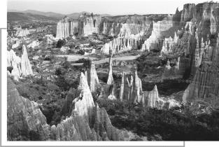 路南石林已经驰名中外,元谋土林也足以与它争奇斗艳。元谋土林分布在云南省元谋县西部和西北部的白草岭山脉余脉以及蜻蛉河、勐冈河、班果河沿岸,总面积43平方千米。元谋土林以虎跳滩、班果、新华等地分布集中,保存完好,面积较大。土林是沙、土、砾石堆积物在干热气候条件下,经过大自然的加工改造而逐步形成的。由于土林的沙砾中含有多种矿物质,使得土林呈现出粉红、浅绿、橘黄、玫瑰红等色泽,随光照角度变化,色彩变幻无穷。