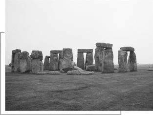 由石头构成的圆圈形建筑物遗迹,在英国有不少,但巨石阵专指伦敦以南160多千米索尔兹伯里平原上的这一个,其他的只能称为石圈。因为这一个最宏伟而且完整(相对而言,其实也几近于废墟)。它是英国最出名的史前文明遗迹,最早可追溯到公元前3050年。“史前”不过是指“有文字记载的历史以前”,但这个词稍经想像加工便会带上“有人类文明以前”的气息,无端添了许多神秘。