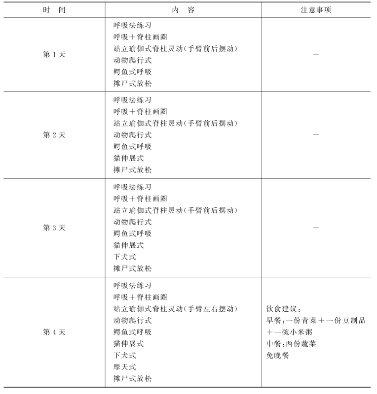 (3)作息建议:早睡早起,晚上10:00前入寝,建议早上6:00~7:00做瑜伽晨练。