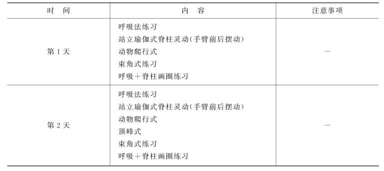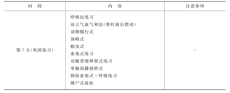 (5)瑜伽练习建议:一般在傍晚6:00~8:00练习,不可中断,练习时长不超过一个半小时,同时不能进行球类等激烈运动。