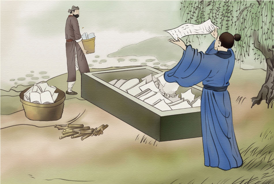 宋应星闻言,立即狂奔到南村纸浆店。店老板听清楚宋应星的请求后说:“你来晚啦!那后半部书已经和别的旧书一起拆散泡入水池,正准备打成纸浆呢。”宋应星急得眼泪都要掉下来了。