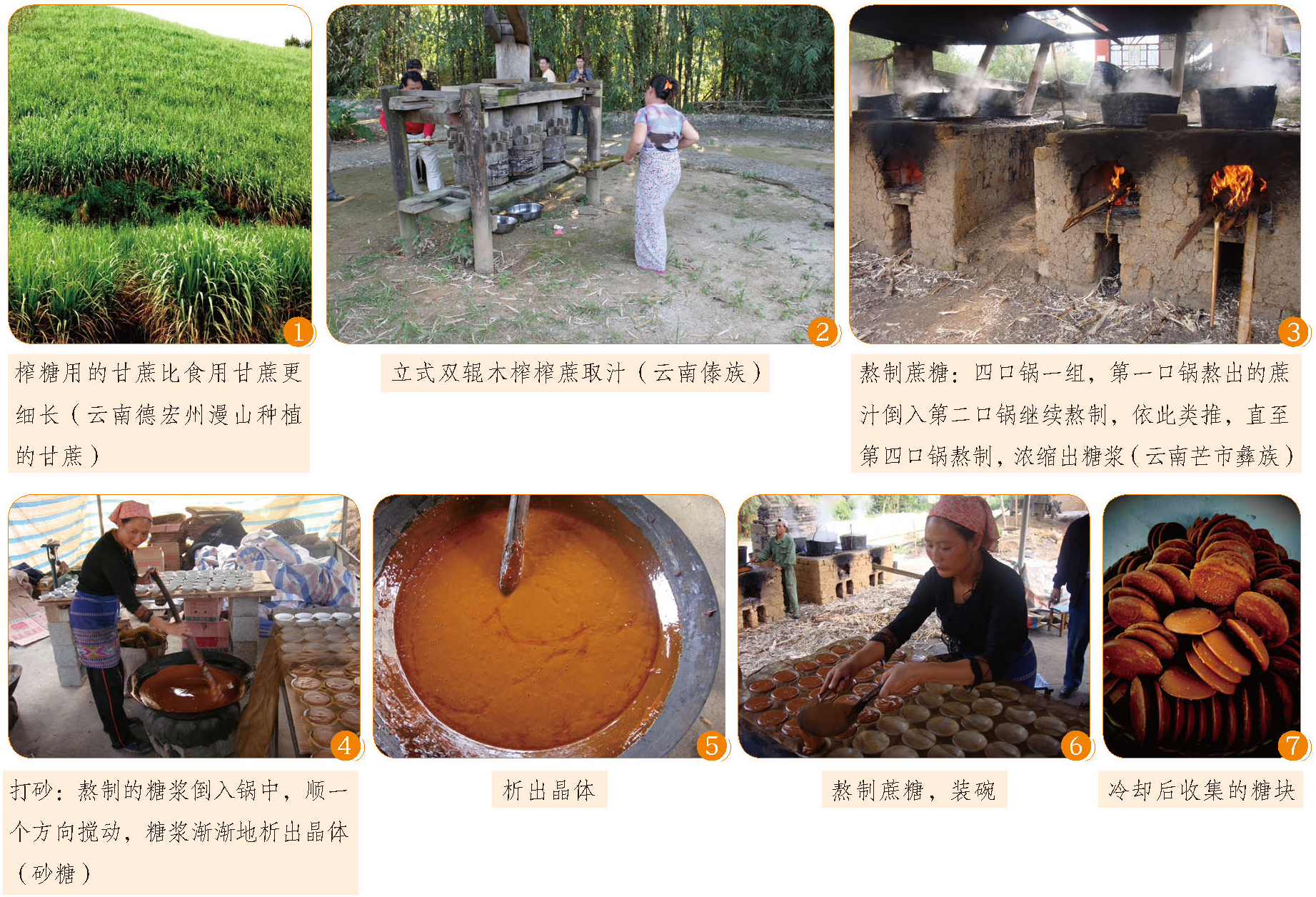 在取用蔗汁熬糖时,把三口铁锅排列成“品”字形,先把浓蔗汁集中在一口锅里,然后再把稀蔗汁逐渐加入到其余两口锅里。如果是柴火不够火力不足,哪怕只少一把火,也会把糖浆熬成质量低劣的顽糖,满是泡沫而没有用处了。