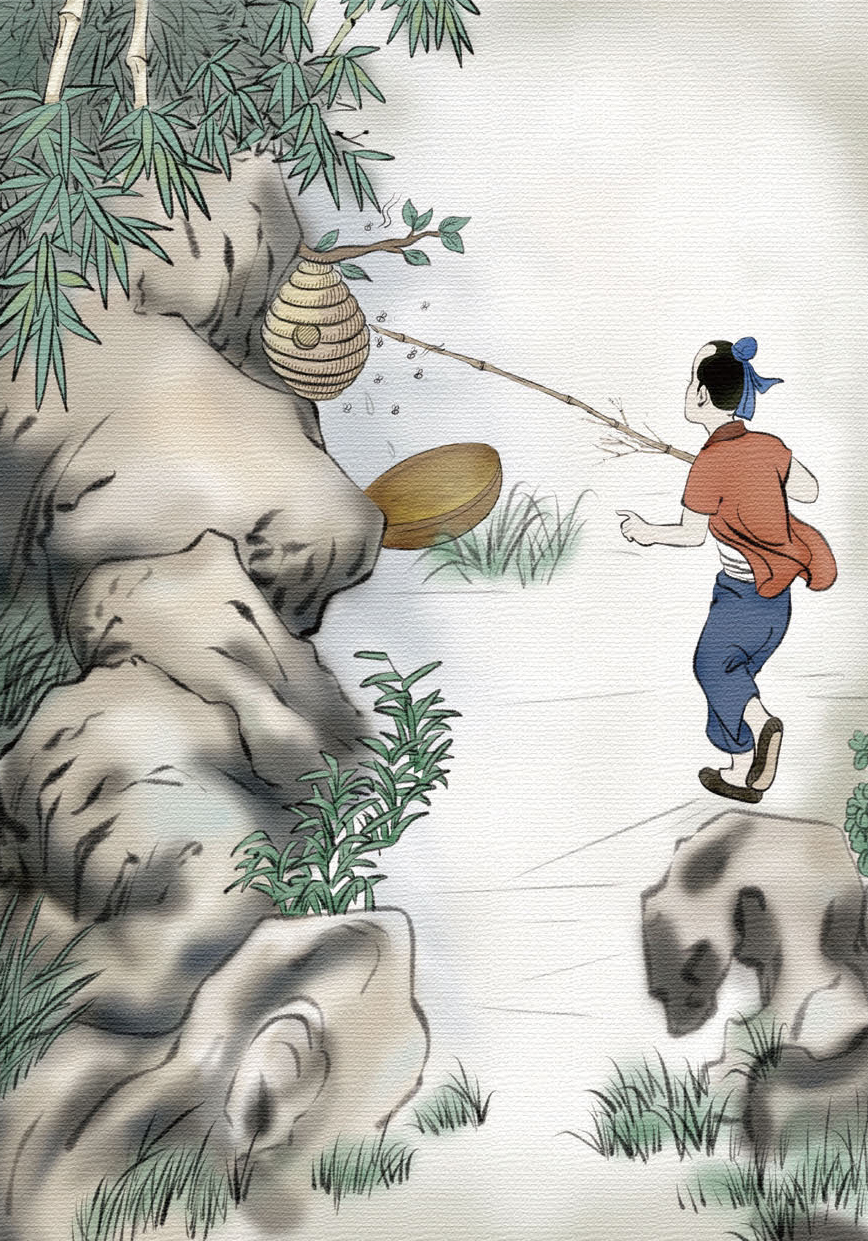 喂养家蜂的人,有的把蜂桶挂在房檐底下的一头,有的就把蜂箱放在窗子下面,都钻几十个小圆孔让群蜂进入。养蜂的人,如果打死一两只家蜂还没有什么问题,如果打死3只以上的家蜂,蜜蜂就会群起而攻击蜇人,这叫作“蜂反”。蝙蝠最喜欢吃蜜蜂,一旦它钻空子进入蜂巢,那就会吃个没完没了。如果打死一只蝙蝠悬挂在蜂巢前方,其他的蝙蝠也就不敢再来吃蜜蜂了,俗话叫作“杀一儆百”。